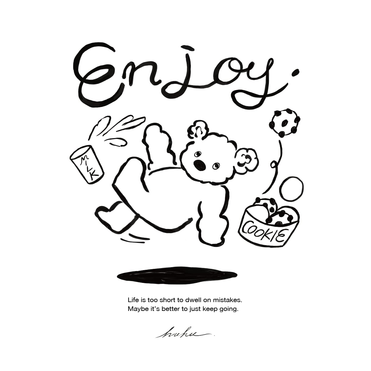 バックには「Enjoy.」の手書き文字と、